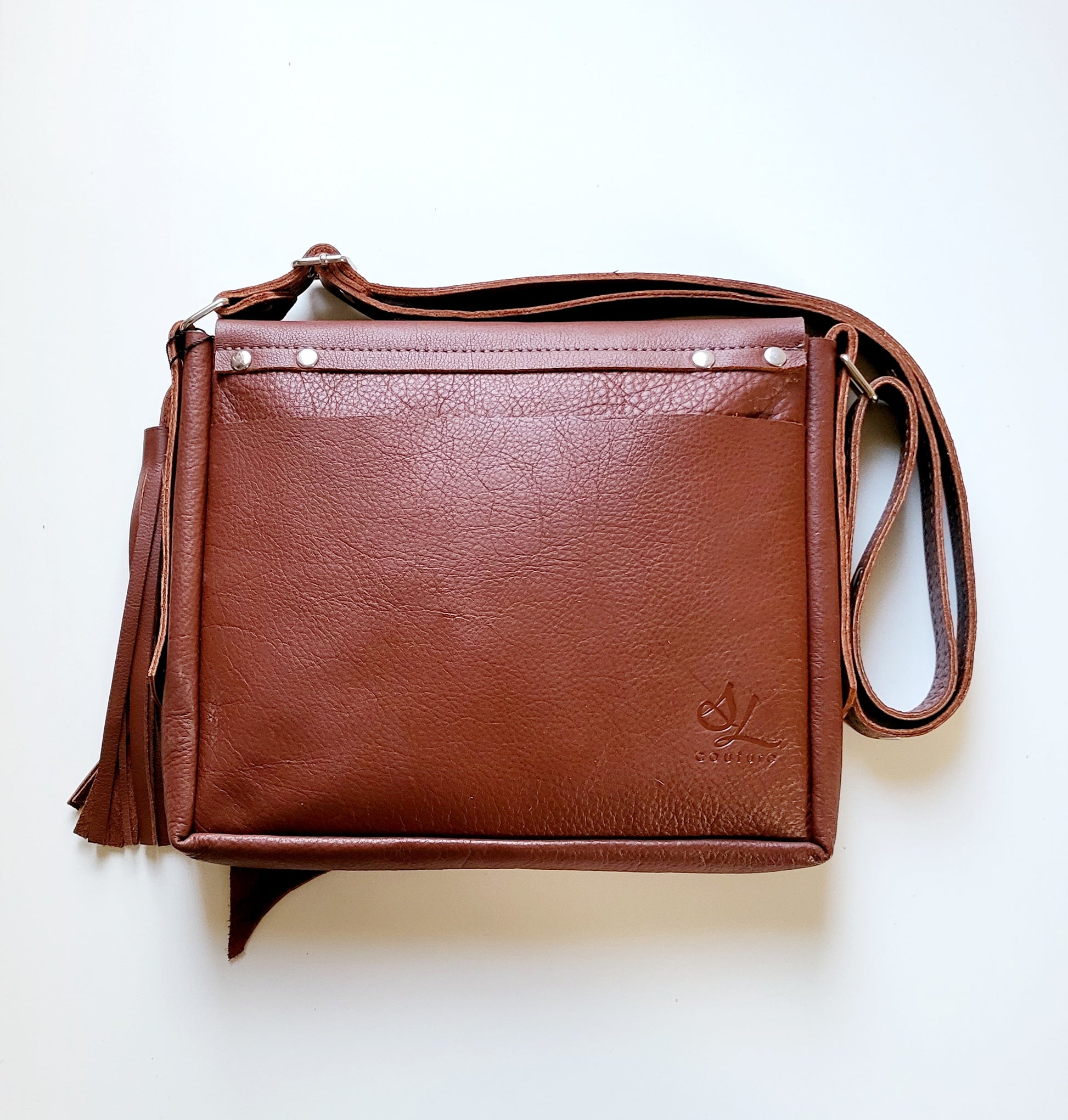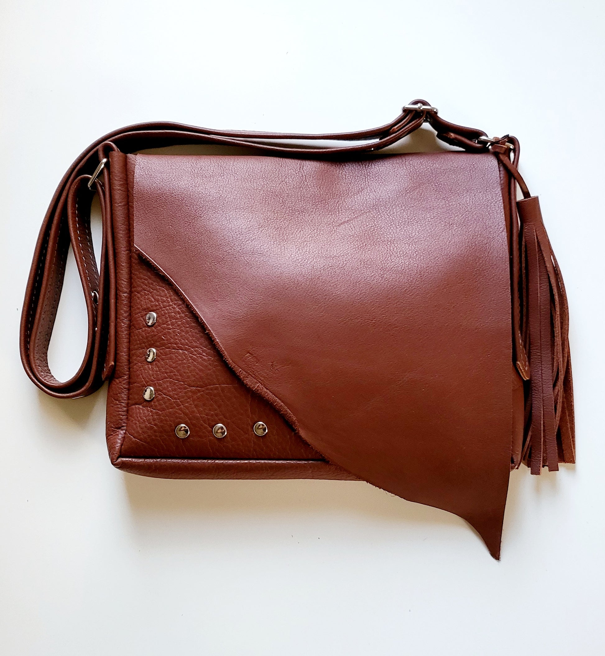 This smooth and pliable leather crossbody features rivet accents, a raw-edge flap, an exterior pocket, and a leather tassel, creating a distinctive look. Its adaptable and adjustable strap ensures personalized comfort, letting you wear it to suit your destination or outfit with ease.