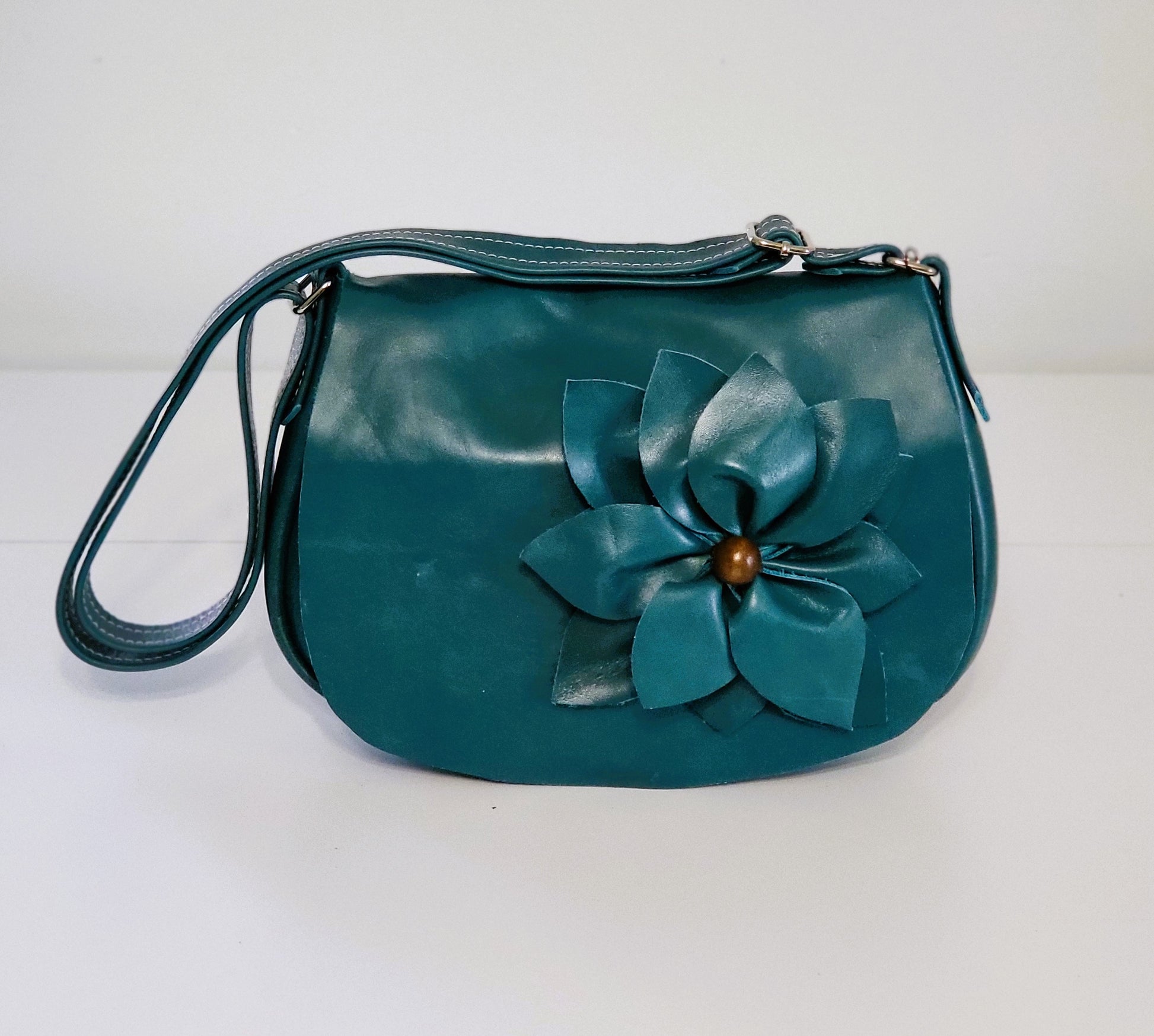 This teal floral crossbody features a soft and flexible design, ideal for those seeking a blend of sophistication and boldness. The adjustable strap offers versatile wear options, ensuring comfort tailored to your destination and outfit.