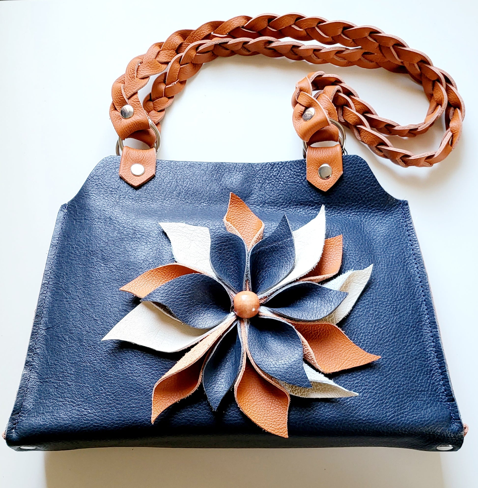 This market tote, featuring a leather flower accent, braided strap, and vibrant color, serves as an ideal standout accessory. Its flexible strap ensures comfortable shoulder wear, while two interior slip pockets provide ample space to organize essentials like your phone, wallet, and sunglasses.