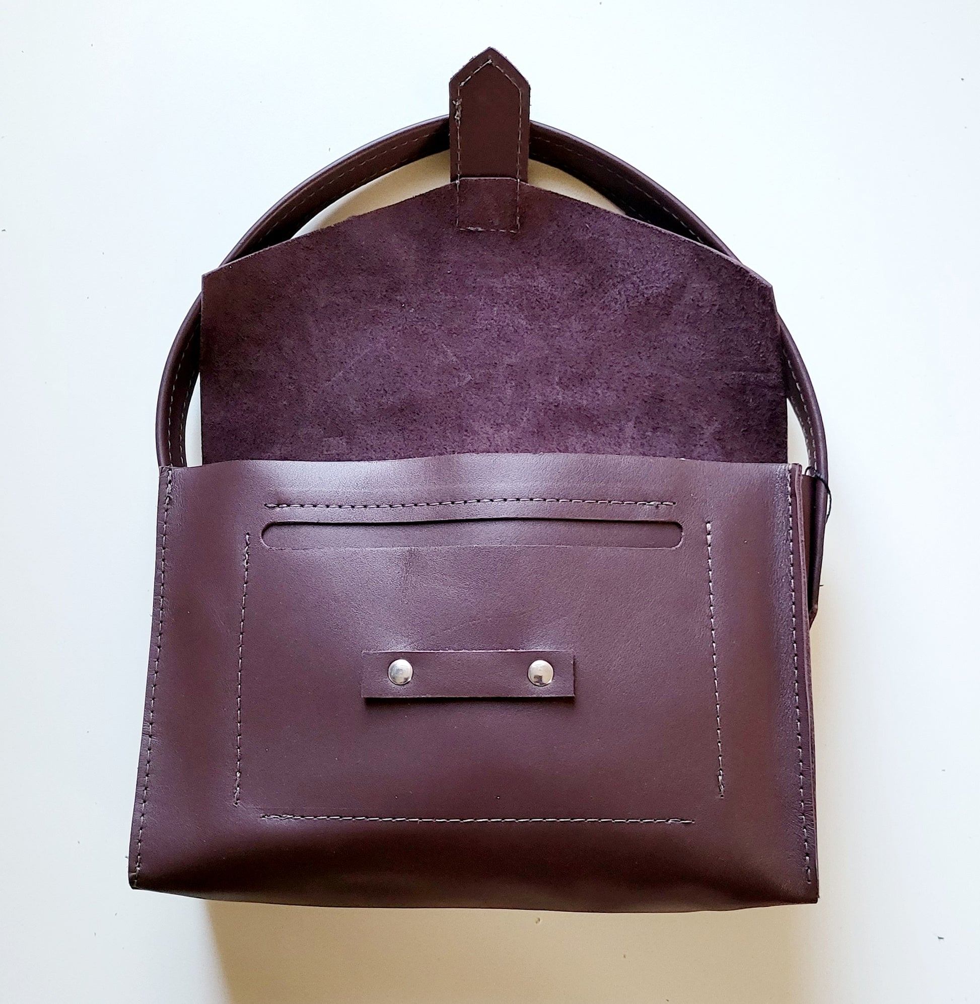 This brown leather crossbody is an ideal choice for those seeking a distinctive statement accessory. Its adaptable strap lets you wear it on your shoulder or carry it as a clutch. Equipped with a pull-tab closure and an exterior peek-a-boo pocket, it keeps your phone, wallet, sunglasses, and other essentials safely stored within the roomy interior.
